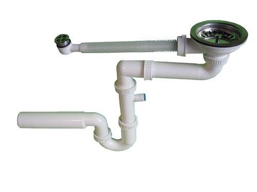 SYFON ZLEW POJEDYŃCZY Z GARDZIELĄ 113MM + PRZELEW SITKO NIERDZEWNE KARLAK
